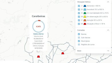 Açude Caraibeiras, em Picuí, registra apenas 4,14% de sua capacidade, segundo dados da AESA