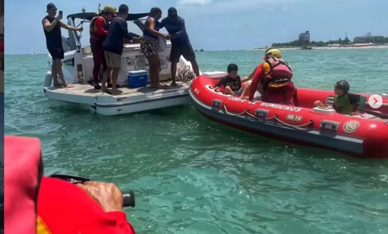 Oito pessoas foram resgatadas de uma embarcação em Ponta de Mato, em Cabedelo, na Grande João Pessoa, na tarde do sábado (31). Segundo o Corpo de Bombeiros, o barco apresentou problemas devido a uma falha mecânica.