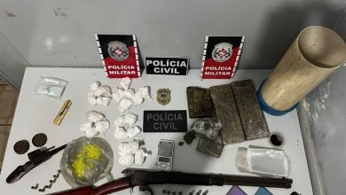 A Polícia Militar apreendeu várias porções de maconha, crack e cocaína, bem como balança de precisão, dinheiro trocado e uma…