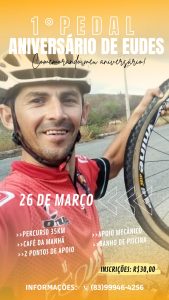 Acontece no domingo (26) de Março, em Picuí, Seridó da Paraíba, o 1° Pedal comemorando o aniversário do ciclista Eudes, com percurso de 35km, café da manhã, 2 pontos de apoio, apoio mecânico e banho de piscina.