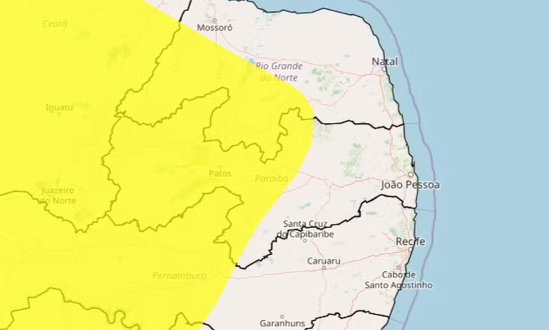 O Instituto Nacional de Meteorologia (Inmet) emitiu, nesta terça-feira (25), um alerta amarelo de baixa umidade do ar para 122 municípios do Cariri, Curimataú e Sertão da Paraíba. O aviso foi emitido às 11h e é válido até as 18h desta quarta-feira (26).