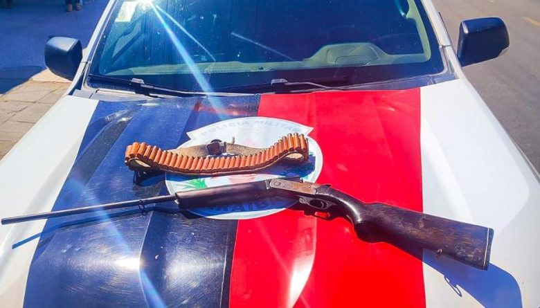 A Polícia Militar apreendeu uma espingarda e mais de 40 cartuchos, na sexta-feira (23), após encontrar o esconderijo de um procurado da justiça paraibana, na cidade de Pocinhos. O acusado tinha fugido minutos antes da chegada dos policiais do 15º Batalhão, mas nas diligências foi localizada uma parede falsa onde estava a arma.