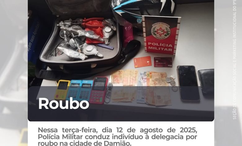 Por volta das 10h30 desta terça-feira, 12/08/2025, Policiais Militares do 9º Batalhão conduziram um indivíduo à delegacia, suspeito de praticar roubos contra idosos, na cidade de Damião-PB.