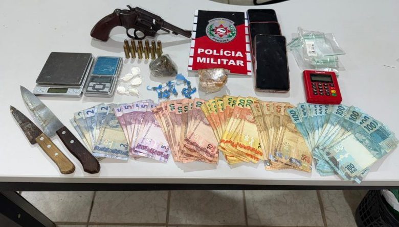 A Polícia Militar prendeu, na noite dessa quarta-feira (4), na cidade de São Bento, sertão da Paraíba, dois acusados de tráfico de drogas. A dupla foi localizada no bairro Loteamento do Portal, com cocaína, maconha, crack, balanças de precisão, dinheiro trocado e material para armazenar entorpecentes. Com eles, equipes do 12º Batalhão também apreenderam um revólver.