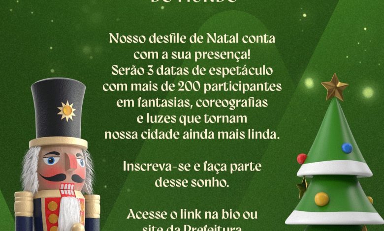 A magia do Natal vai tomar conta das ruas de Cuité. A Prefeitura está com inscrições abertas para o Desfile de Natal, um dos eventos mais aguardados do fim de ano na cidade. O espetáculo contará com três apresentações e reunirá mais de 200 participantes, entre dançarinos, artistas e figurantes, que darão vida ao espírito natalino.